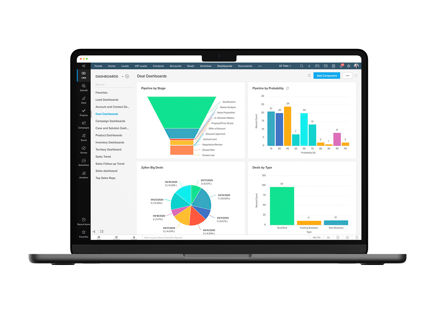 Centraliza tus procesos comerciales con Zoho CRM: productividad, análisis y personalización en un mismo lugar.
